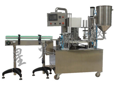 轉盤式全自動灌裝旋蓋機采用德國FESTO氣動控制系統,全套日產可編程控制器、光電、溫控、無級調速系統。自動完成上杯、加蓋、灌裝、封口、打碼、切 膜、檢瓶等動作。包裝過程無噴濺,無泄漏。 包裝產品美觀大方。該機適用于火鍋底料、米酒、果凍、冰淇淋等食品飲料的杯狀(盒狀)自動灌裝封蓋。